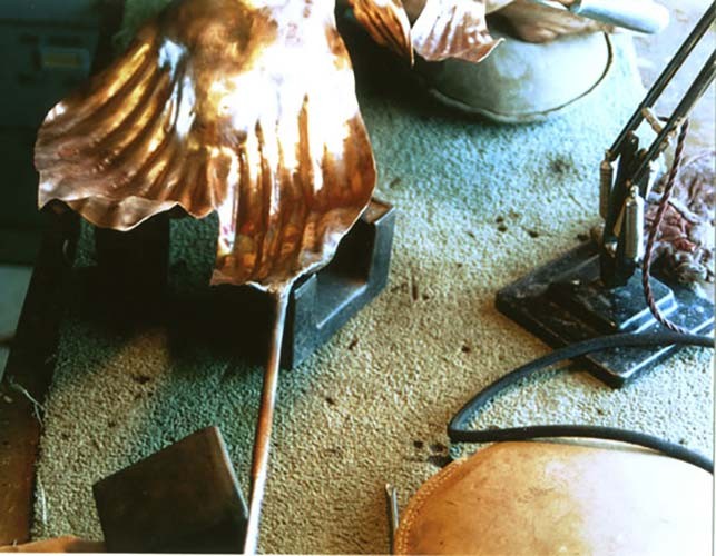 THE DANCING PARTNERS was the first copper piece to be made to commission. I had designed a large pair of fish, dancing on their tails, out of beaten and welded copper. It proved to be quite a challenge. The technique took about three years of research and experimentation before the piece could be completed - fortunately I had extremely patient clients!